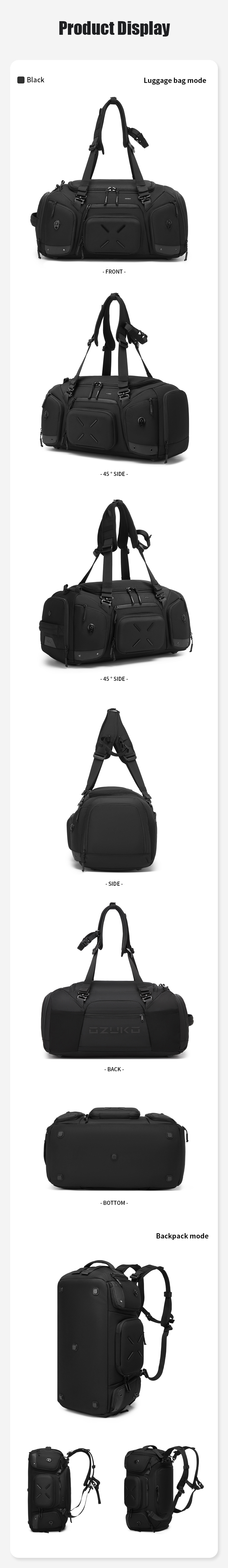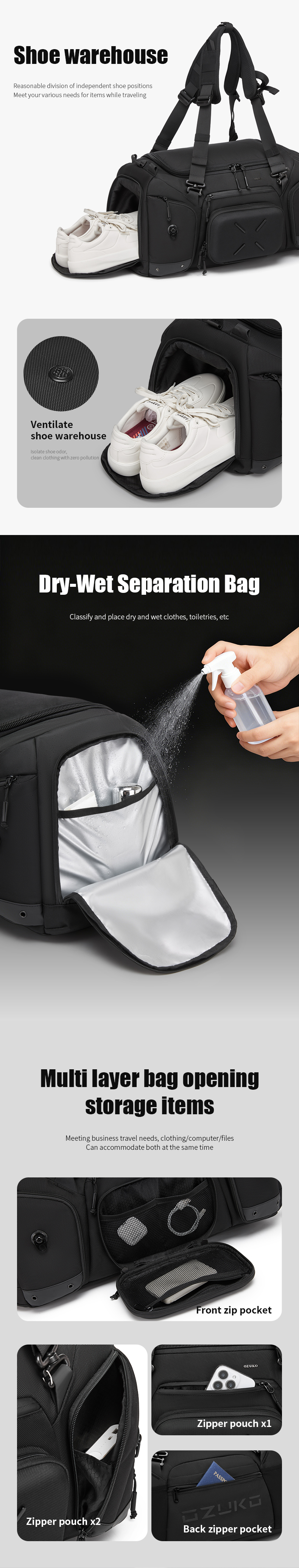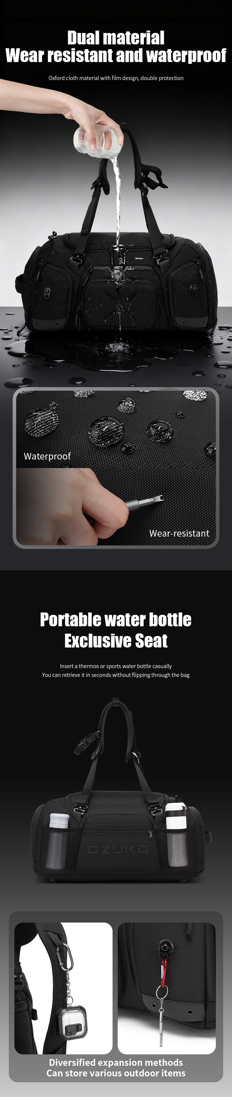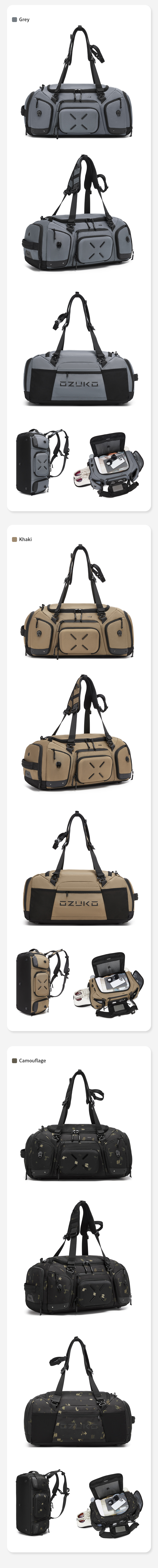 OZUKO 9834 46L Large Capacity Waterproof Men's Travel Backpack Stylish Sport Duffle Overnight Trip Weekender Shoe Compartment