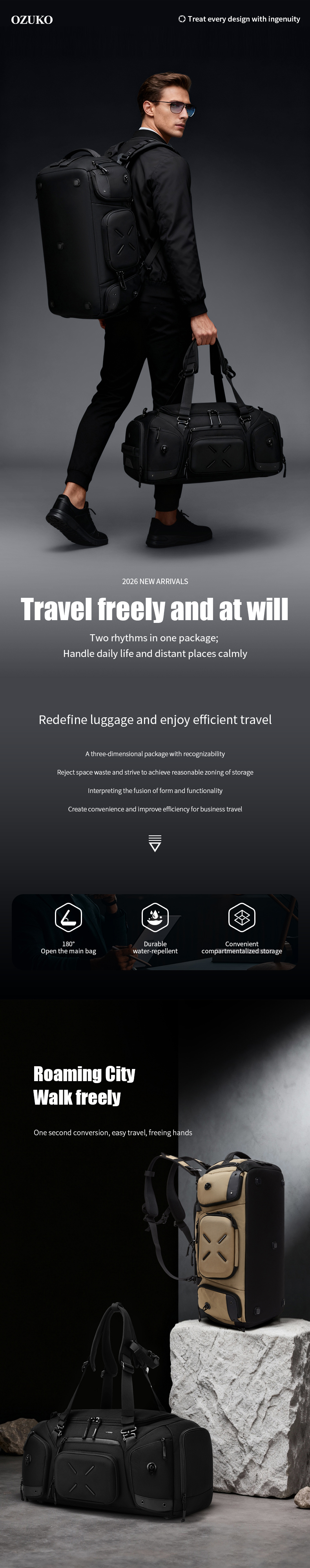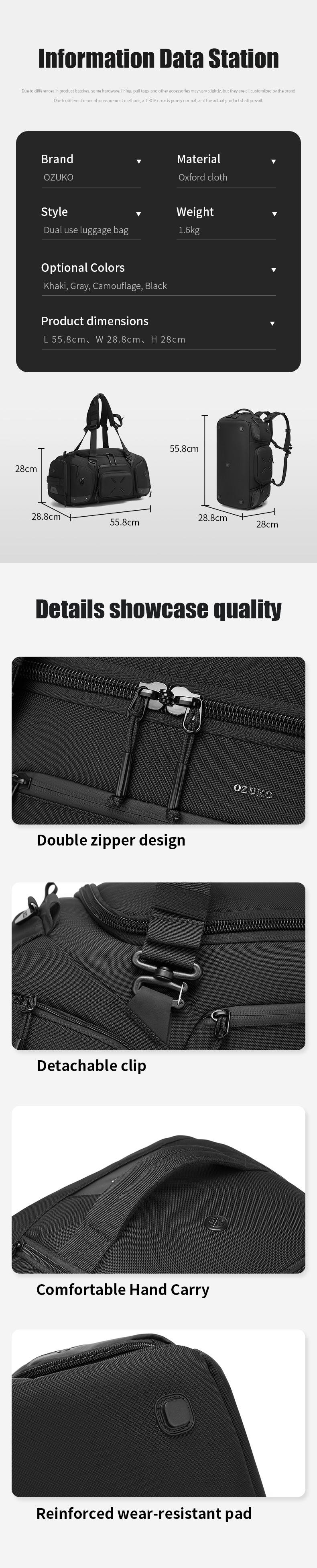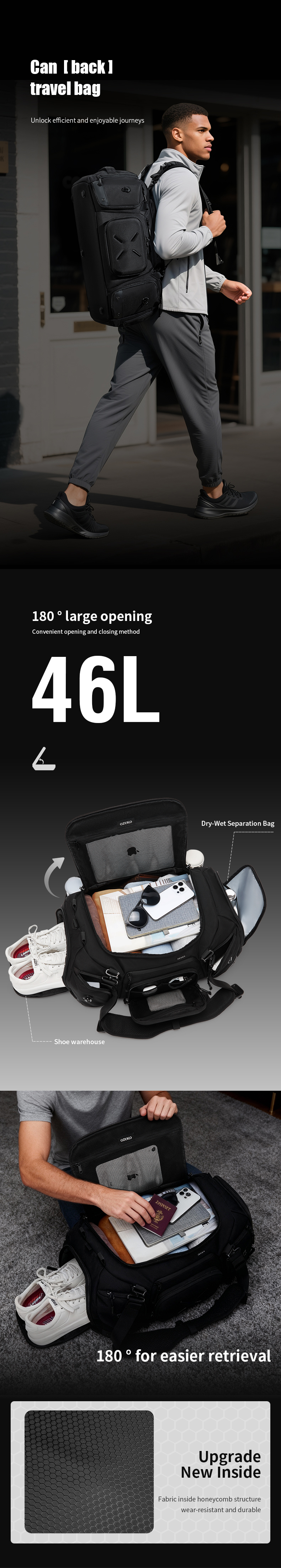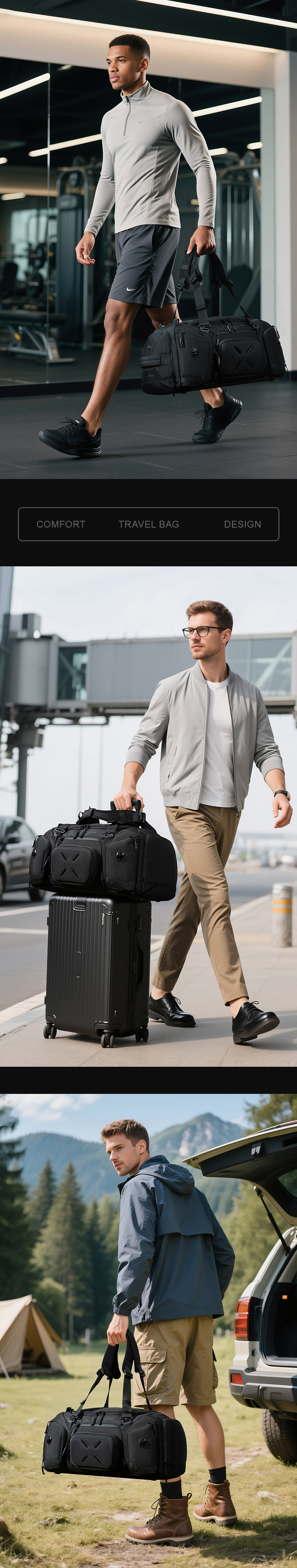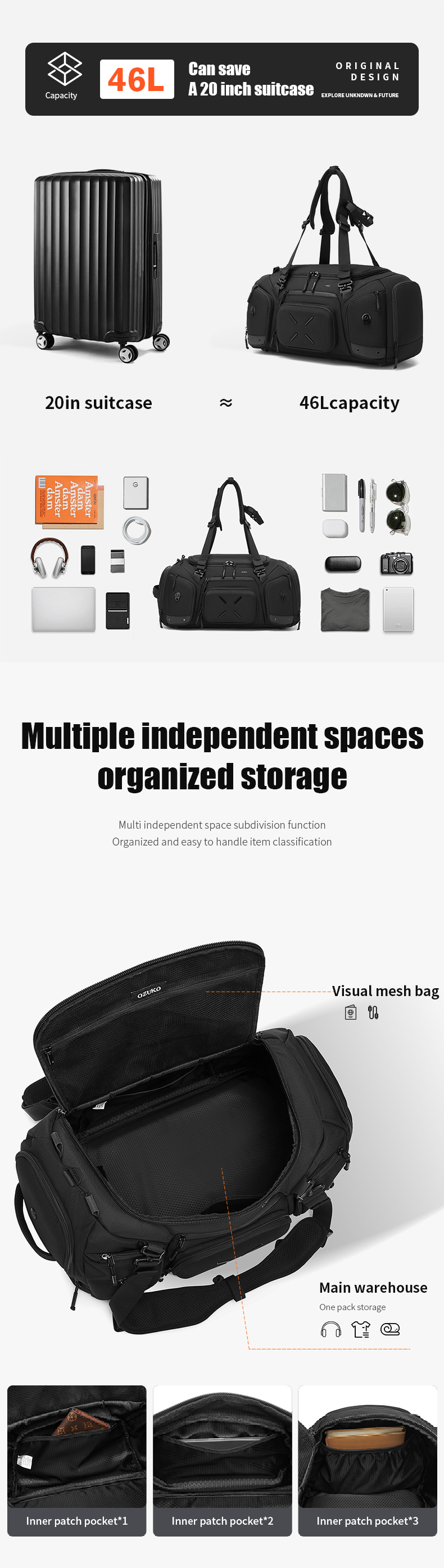 OZUKO 9834 46L Large Capacity Waterproof Men's Travel Backpack Stylish Sport Duffle Overnight Trip Weekender Shoe Compartment